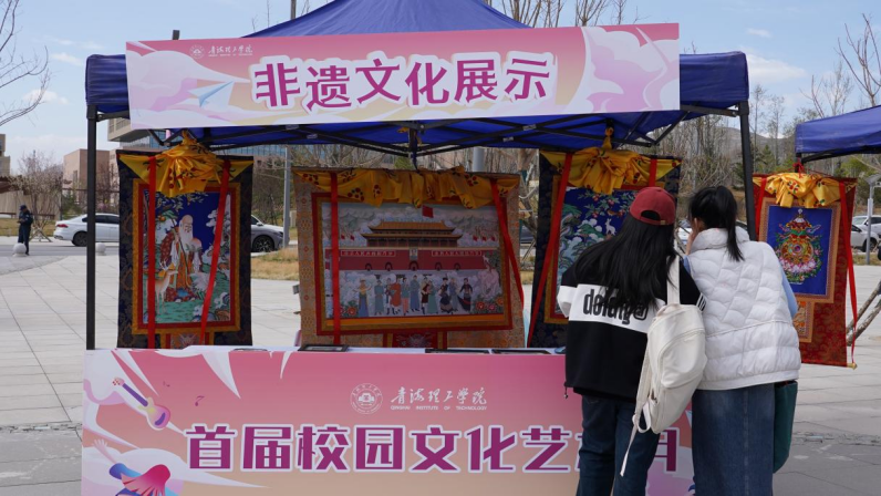在非遗技艺互动环节,3位非物质文化遗产传承人向同学们展示青藏高原最具代表性的非物质文化遗产唐卡绘画艺术作品,以铸牢中华民族共同体意识为主线,一幅幅民族团结、山宗水源作品让师生了解传统工艺制作过程,推动非遗文化在青年群体中的活态传承。